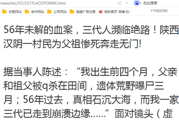 据当事人陈述:“我出生前四个月,父亲和祖父被q杀在田间,遗体荒野曝尸三月;56年过去,真相石沉大海,而我一家三代已走到崩溃边缘……”面对镜头(虚拟),陕西汉阴县铁*寺镇村民葛贤国声音颤抖。一桩半个多世纪前的历史悲剧,正以残酷的方式延续至今。
