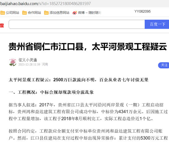 然而,面对这一连串的异常操作和重重迷雾,提出了严肃的质疑:江口县住建局未经同意擅自划转2500万元工程款的行为是否合法?所谓“方便化债”背后是否暗藏利益输送?为何关键资料被刻意隐匿、正常维权遭强制措施、合理诉求被推诿搪塞?在这一系列明显违背规章制度和程序正义的行为背后,究竟是谁在纵容和默许,又是谁在上面充当“保护伞”,使得问题久拖不决,使百余从业者的血泪诉求石沉大海?这些疑问必须得到解答,相关责任必须受到彻查!