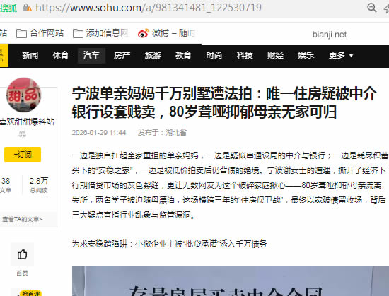 一边是独自扛起全家重担的单亲妈妈,一边是疑似串通设局的中介与银行;一边是耗尽积蓄买下的“安稳之家”,一边是被低价拍卖后仍背债的绝境。宁波谢女士的遭遇,撕开了经济下行期借贷市场的灰色裂缝,更让无数网友为这个破碎家庭揪心——80岁聋哑抑郁母亲流离失所,两名学子被迫随母漂泊,这场横跨三年的“住房保卫战”,最终以家破债留收场,背后三大疑点直指行业乱象与监管漏洞。