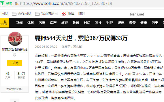 谁能想到,一场普通合作竟酿成灭顶之灾? 43岁男子邹碧华,因涉嫌合同诈骗被羁押长达544天,羁押期间突发脑干出血,之后被批准采取监视居住措施,在医院监视居住8天后抢救无效死亡。悲痛之余,家属提出367万余元国家赔偿,最终仅获33万余元,其余诉求全部被驳回,后续复议也迟迟无结果,这起事件迅速引发全网关注。2016至2017年,正值中年打拼期的邹碧华,为改善家庭生活,与王某莹、张某奎合作参与河北霸州御某阁二期房产项目销售,该项目由李某涛实际运作,彼时李某涛未取得项目“五证”,却称可“边建设、边办手续”,邹碧华未核实手续便投入销售、协助收取房款及电商费,他未曾料到这场合作会成为变故开端,将家庭推向深渊。